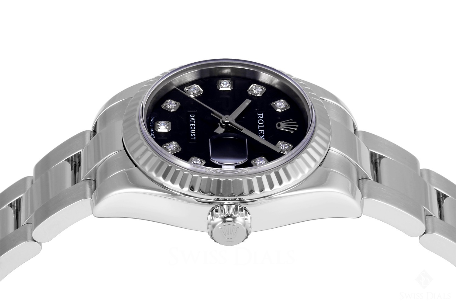 Ladies Rolex Datejust Stainless Steel Black Jubilee Diamond Dial Fluted Bezel Oyster Band New Style